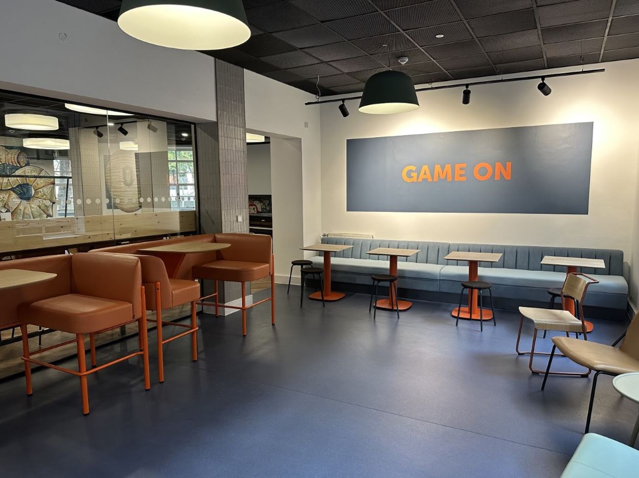 Design & Build collaboration for complete strip-out and refurbishment of Student Union Common Room and Retail Space. Works included strip-out back to core and full fit-out including mechanical and electrical, lighting, flooring, new grid ceilings, AV and data, new chillers and till point, full kitchen furniture, and signage.